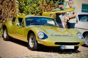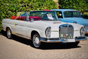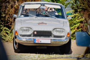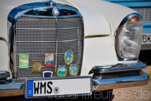 Wellen war: klein, angenehm, ruhig – genau das Richtige für entspannte Benzingespräche und den Blick auf die Fahrzeuge. Neben Gulasch, Gegrilltem, Kuchen und leckerem Kugel-Eis gab es aber vor allem für die Augen einiges: ein wunderschöner Volvo Amazon (in Deutschland als 120/130 Serie bekannt), eine Borgward Isabella, ein Ford Taunus (auch hin und wieder als „Badewanne“ bezeichnet) – und als Highlight ein Mercedes W111 Cabrio. Während die Limousine mit ihrem klassischen Ponton-Stil eher als Familienwagen glänzte, wirkte das Cabrio mit seinem offenen Dach und eleganten Linien gleich noch ein Stück luxuriöser und ist heute eine echte Rarität.